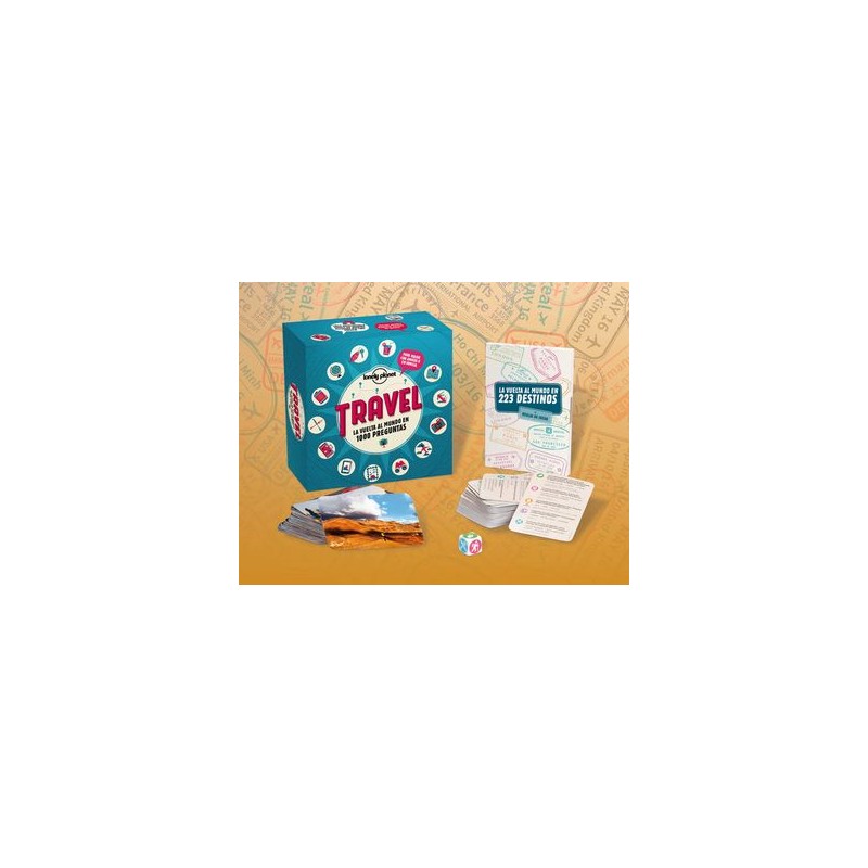 Reseña del libro "Travel. La Vuelta al Mundo en 1000 Preguntas"¿Dónde puedes degustar cuernos de gacela? ¿Qué particularidad tienen los pueblos peruanos del lago Titicaca? ¿Qué majestuoso animal acuático puedes observar en Ko Lanta, en Tailandia? La respuesta a estas y a otras muchas preguntas la encontrarás en Travel, el juego que te propone dar la vuelta al mundo en 1000 preguntas. Pondrás a prueba tus conocimientos sobre naturaleza, cultura, gastronomía, deportes y consejos de viaje, y conocerás un sinfín de curiosidades de 223 destinos. Para jugar con amigos o con la familia, Travel te invita a recorrer miles de kilómetros mientras te diviertes y aprendes. Travel es el juego que no tiene fronteras. Incluye un paquete de cartas, un dado y un libro que indica para cada destino cuándo ir, lo esencial y anécdotas insólitas.